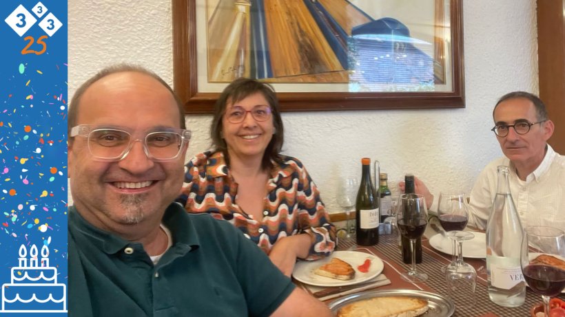 3tres3 nasceu em 4 de abril de 1998. No início de abril de 2023, 25 anos depois, encontrei Enric Marco e Miquel Collell para comemorar o sucesso do projeto. Encontramos no mesmo restaurante onde nos conhecemos há 25 anos com o já falecido José Barceló. Aquele encontro foi o meu ponto de partida na 3tres3, um projeto que o José, o Enric e o Miquel já tinham em curso e estava prestes a ser lançado.