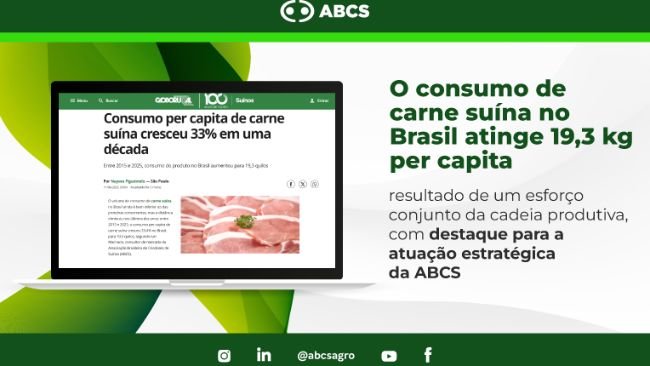 O consumo de carne suína no Brasil atinge 19,3 kg per capita, resultado de um esforço conjunto da cadeia produtiva, com destaque para a atuação estratégica da ABCS.