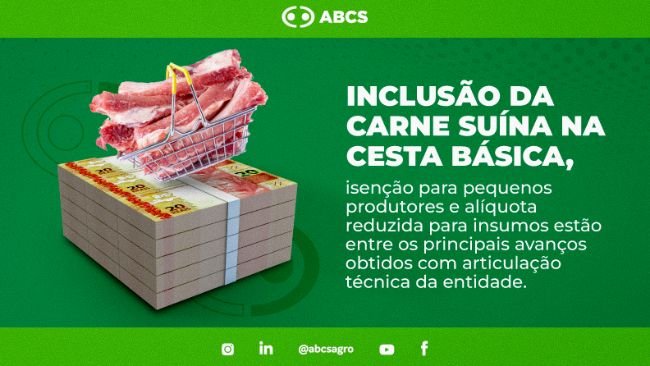 Inclusão da carne suína na cesta básica, isenção para pequenos produtores e alíquota reduzida para insumos estão entre os principais avanços obtidos com articulação técnica da entidade