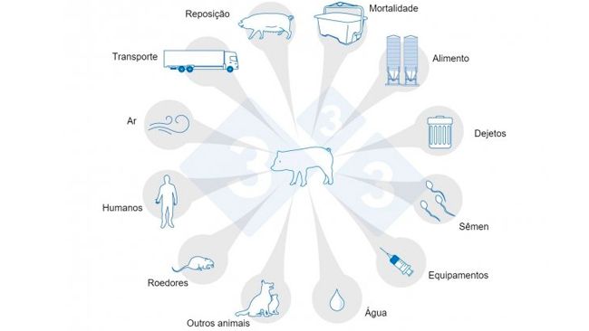 Uma granja em uma região de alta densidade com medidas de biossegurança em vigor é infectada com App após o aumento no número de animais.