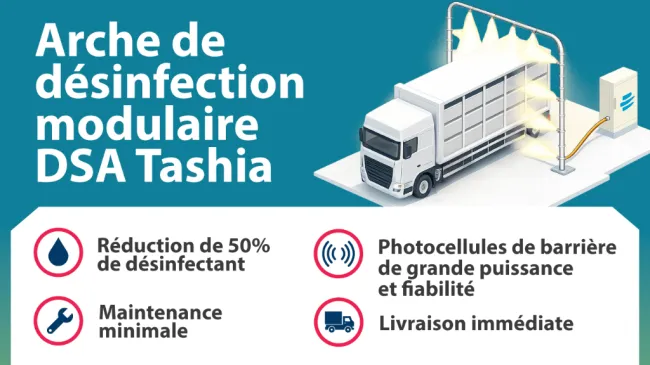 L’utilisation des arches de désinfection améliore la biosécurité des exploitations agricoles. Il s’agit d’un élément essentiel dans la stratégie de protection des élevages contre l’introduction d’agents pathogènes extérieurs.