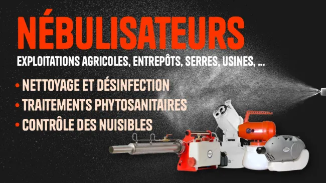 Ces systèmes fonctionnent à l’aide d’équipements motorisés électriques et génèrent une taille de gouttelettes comprise entre 5 et 50 μm, taille optimale pour lutter contre les germes, les champignons et les virus.