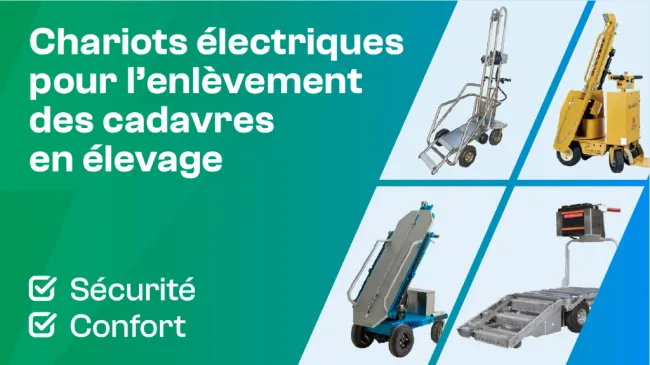Tout élevage peut utiliser les chariots électriques pour l’enlèvement des cadavres, y compris les élevages de conception plus ancienne, car leur capacité de manœuvre leur permet de circuler dans des couloirs étroits.