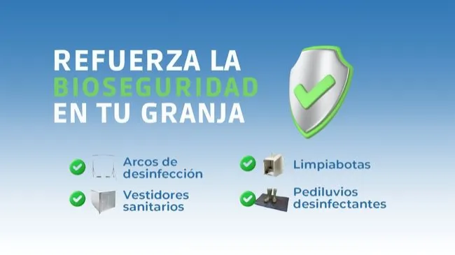 - Instalaciones y equipos: arcos de desinfección, vestidores sanitarios, pediluvios, contenedores de cadáveres y de residuos veterinarios