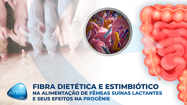 Para avaliar este efeito na dieta de fêmeas em lactação e igualmente no alimento de leitões pós desmame, uma equipe de pesquisadores da universidade de Illinois e da AB Vista (Acosta et al., 2024) avaliaram os efeitos da xilanase (Econase XT, AB Vista) e de um aditivo estimbiótico (Signis, AB Vista) no desempenho e na digestibilidade de nutrientes de leitões desmamados onde as matrizes também consumiram xilanase ou não na dieta de lactação. As hipóteses avaliadas foram: 1) a leitegada proveniente de matrizes alimentadas com xilanase na lactação proporciona maior desempenho em leitões pós desmame e; 2) Xilanase e o Aditivo Estimbiótico melhoram o desempenho e a digestibilidade de energia bruta, fibra dietética e energia digestível na dieta para leitões após a desmama. Para isso, um total de 120 leitões recém desmamados de matrizes alimentados com uma dieta de lactação sem xilanase e 120 leitões de matrizes alimentadas com uma dieta de lactação contendo 16.000 unidades de xilanase (BXU) por kg foram usados. Os leitões foram distribuídos seguindo um fatorial de 2 x 3, sendo dois grupos de matrizes (dieta de lactação sem ou com xilanase) e três tratamentos dietéticos para os leitões após o desmame, ou seja: 1) controle; 2) controle mais 100 g/t de xilanase, e; 3) controle mais 100 g/t de aditivo estimbiótico. Os leitões foram desmamados em 4 blocos e atribuídos a 12 boxes por bloco, com 5 leitões por box para um total de 8 boxes por tratamento. Os leitões foram alimentados com dietas divididas em 3 fases, sendo: fase 1 de 1 a 14 dias, Fase 2 de 15 a 28 dias e fase 3 de 29 a 42 dias pós desmama. A desmama foi realizada com leitões aos 21 dias de idade. O ganho médio diário, consumo ração diário e a eficiência alimentar (ganho/consumo) foram calculados. As amostras fecais foram coletadas ao final das fases 2 e 3. Os dados foram analisados por meio do procedimento MIXED do SAS.