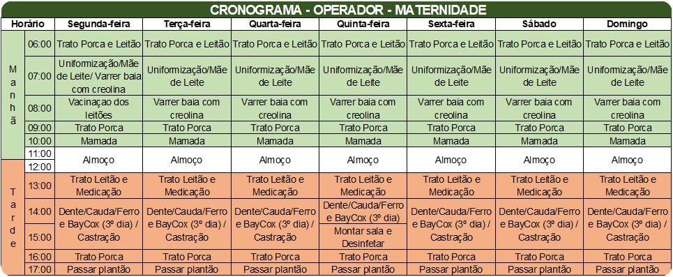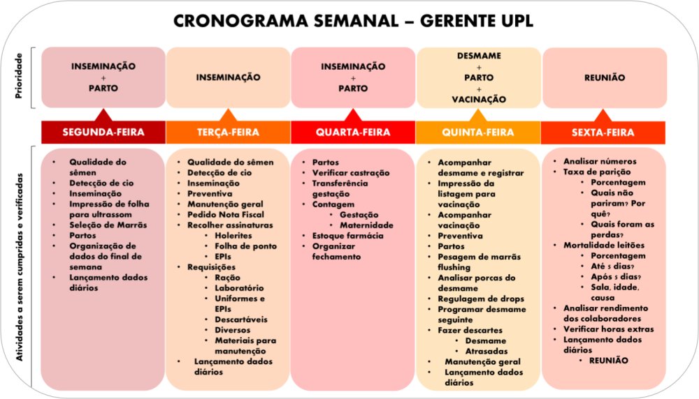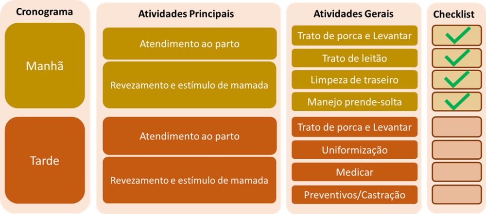 A rotina das granjas suinícolas é intensa e dinâmica, sendo necessário a boa administração do tempo. Uma solução simples e acessível a todas as granjas é o cronograma de tarefas.