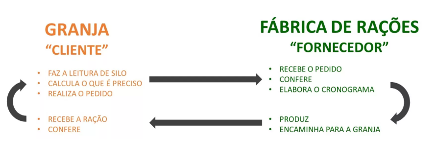 Uma forma interessante e eficiente de enxergar esse cenário é encarar a granja e a fábrica de rações como empresas distintas; ou melhor: pensar que a granja é o cliente e a fábrica de rações, o fornecedor. Esse modo de pensar pode ser uma virada de chave quanto a forma de gerenciar os setores.
