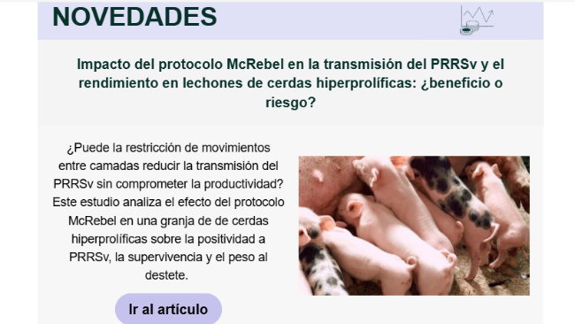 Impacto del protocolo McRebel en la transmisión del PRRSv y el rendimiento en lechones de cerdas hiperprolíficas: ¿beneficio o riesgo?