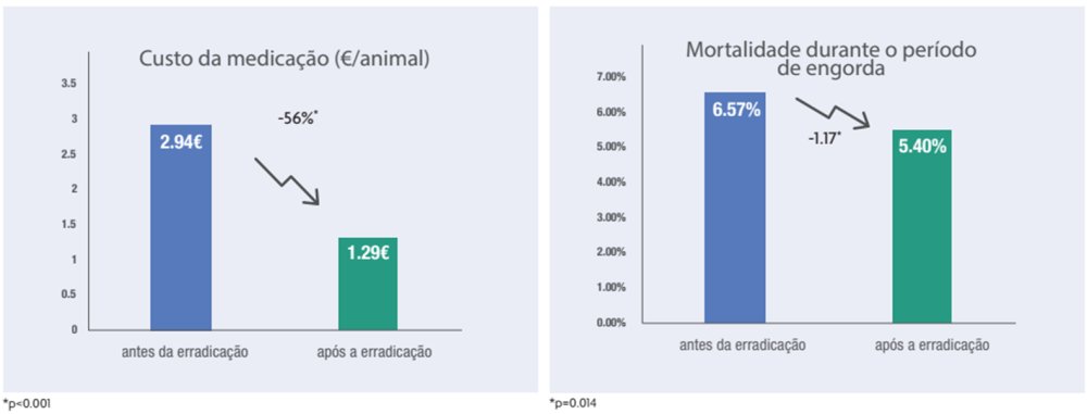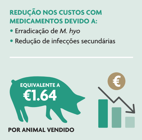 A redução observada nos custos com medicamentos equivale a 1,64 euros por suíno vendido.