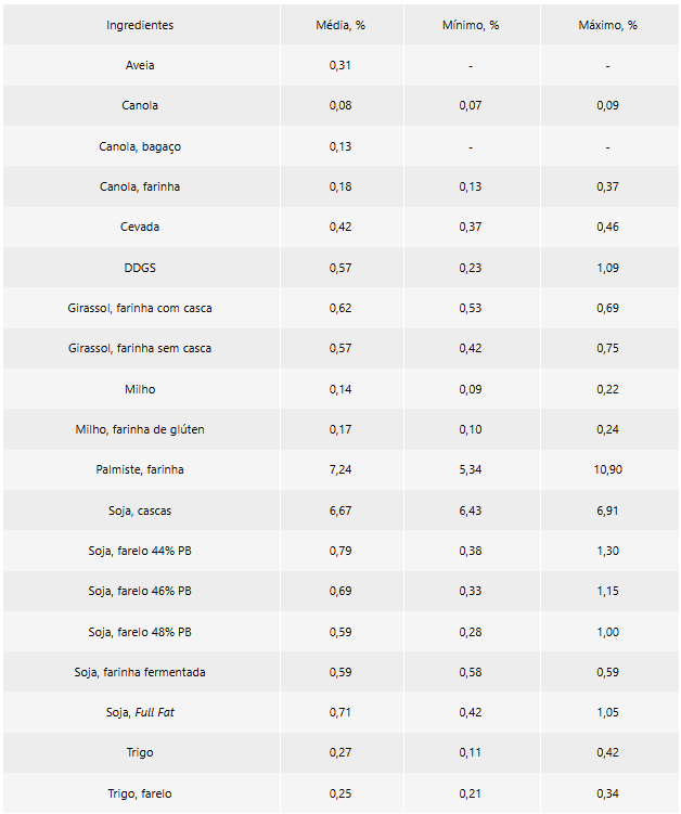 Tabela 1. Conteúdo de β-mananos nos principais ingredientes utilizados em dietas para aves e suínos