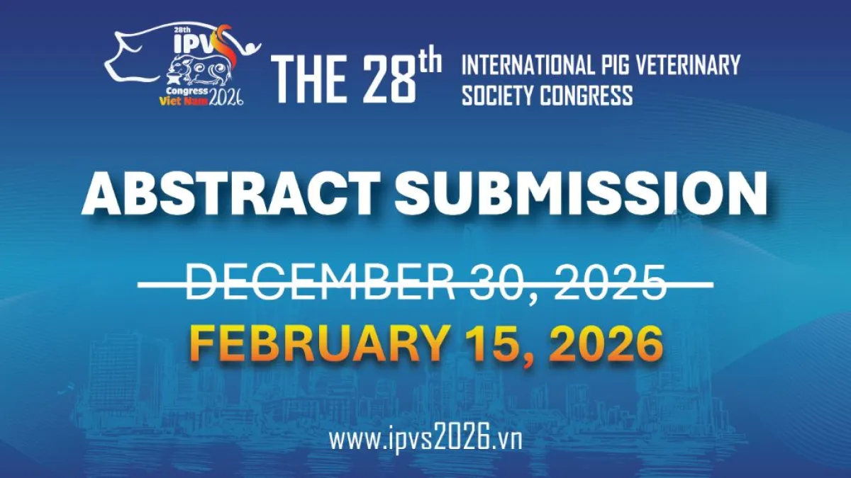 This extension provides a valuable opportunity for more professionals and researchers in the field of swine veterinary medicine to contribute their work to this esteemed event. We encourage all interested individuals to submit their abstracts and be a part of the IPVS 2026 Congress, which will be held in Ho Chi Minh City, Vietnam, from June 16–19, 2026.