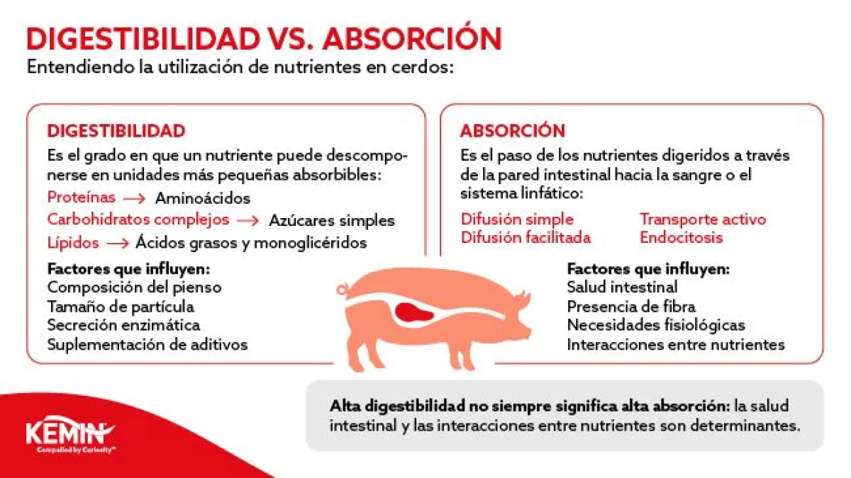 Digestibilidad vs. Absorción: Comprendiendo la Utilización de Nutrientes en Cerdos
