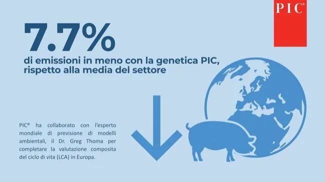 Una nuova valutazione del ciclo di vita (LCA) europea conferma che un programma genetico PIC completo (verro + scrofa) garantisce una riduzione del 7,7 % delle emissioni di gas serra (GHG) rispetto alla media del settore.