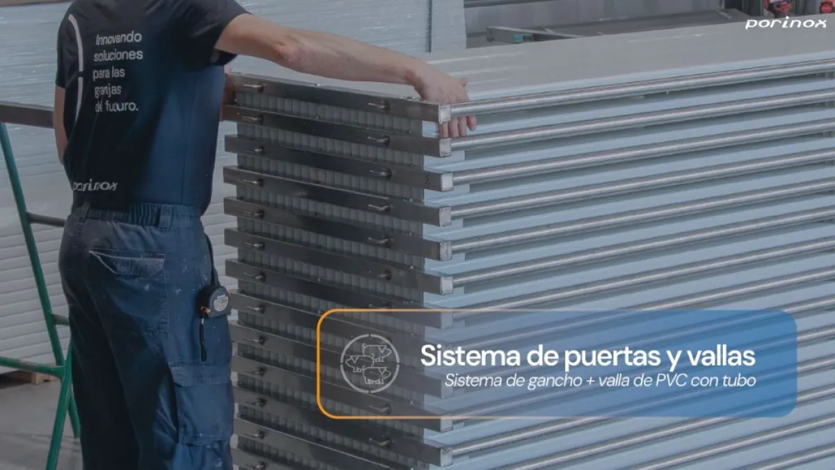 El sistema combina paneles de PVC liso de 35 mm, estructura de tubo inoxidable y cierre por sistema de gancho, ofreciendo una solución robusta y funcional para separaciones en corrales de destete.