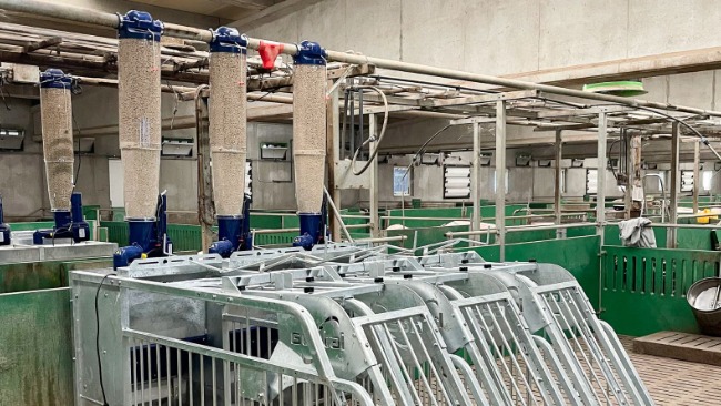 En este destete, el cliente confió en nuestro material para el equipamiento interior: slats de plástico, nidos, paneles de PVC con sus sujeciones de acero inoxidable, tolva y bebederos de inox, además de nuestra placa de hormigón prefabricado, que incorpora aislante de doble densidad y tubos mixtos (plástico + metal) para evitar sesgos y asegurar curvas de distintos diámetros.