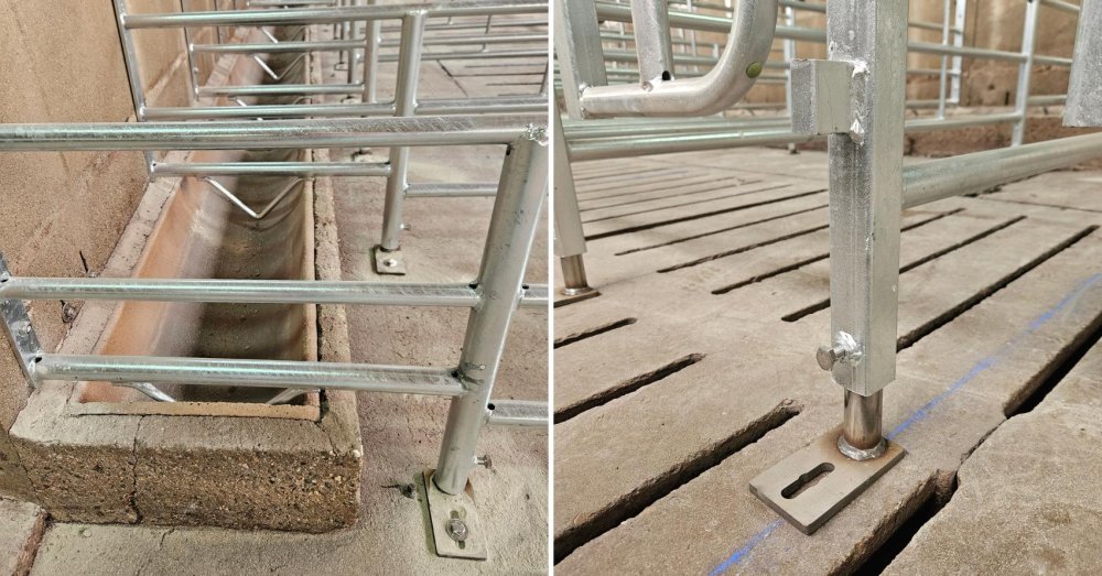 🔺 Integración con la instalación existente: frontales de los boxes diseñados específicamente para fijarse a la tabiquería de hormigón prefabricado y recibir los comederos actuales.