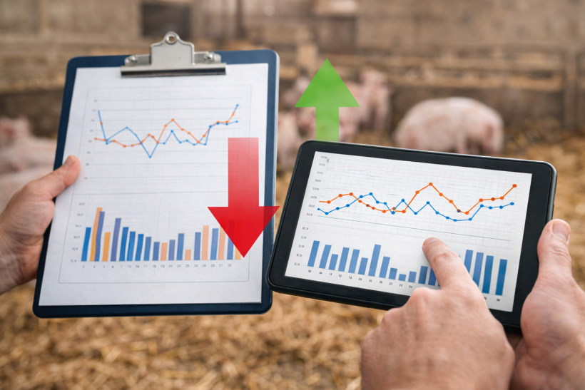 As cotações médias do suíno vivo registraram fortes quedas em fevereiro. Na praça SP-5 (Bragança Paulista, Campinas, Piracicaba, São Paulo e Sorocaba), o animal vivo foi negociado à média de R$ 6,91/kg no mês, contra R$ 8,24/kg em janeiro/26 (expressiva baixa de 16,1%) e R$ 8,66/kg em fevereiro/25 (forte desvalorização de 20%).