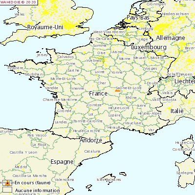 A fonte ou origem da infecção é incerta e os animais apresentaram infecção subclínica. A contaminação por outros espécimes de animais selvagens de vida livre é muito provável, pelo contato através da cerca. Não existe ligação epidemiológica com explorações domésticas de suínos. Dentro do perímetro de 5 km do foco, nenhum outro local com javalis ou suinocultura está listado.