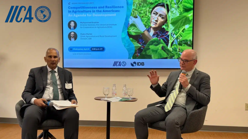 A apresentação, realizada diante de cerca de 240 participantes presenciais e virtuais, fez parte de uma agenda de fortalecimento do agro regional que o diretor do IICA desenvolveu com autoridades do governo dos Estados Unidos e órgãos financeiros multilaterais. Ibrahim dialogou com Pedro Martel, chefe da Divisão de Agricultura e Desenvolvimento Rural do BID, que destacou que, apesar dessa posição de liderança mundial, 28% da população latino-americana enfrenta insegurança alimentar, e que o crescimento da produtividade agrícola regional desacelerou de forma significativa entre 2010 e 2020 devido a lacunas em eficiência técnica.