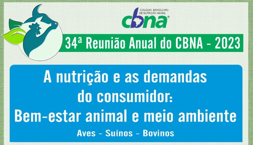 O Colégio Brasileiro de Nutrição Animal (CBNA) ressalta a proximidade do fim do prazo para a submissão de trabalhos científicos para a 34ª Reunião Anual do CBNA "A Nutrição e as Demandas do Consumidor: Bem-Estar Animal e Meio Ambiente" - Aves, Suínos e Bovinos.