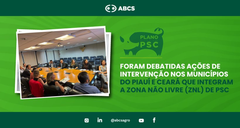 A diretora técnica da ABCS, Charli Ludtke, reforçou que a agenda foi positiva, com encaminhamentos concretos para a expansão da Zona Livre. Segundo ela, as equipes do DSA/MAPA irão atuar, em conjunto com os Serviços Veterinários Estaduais, na realização de inquéritos soroepidemiológicos para avaliação da circulação viral.