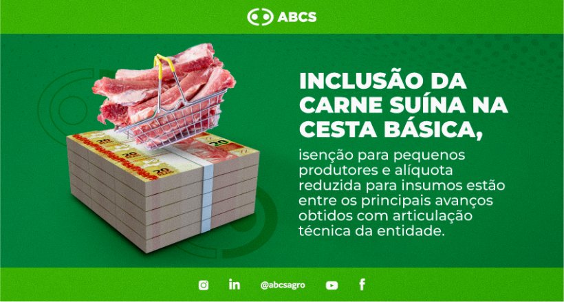 - Inclusão da carne suína na cesta básica, com alíquota zero;
