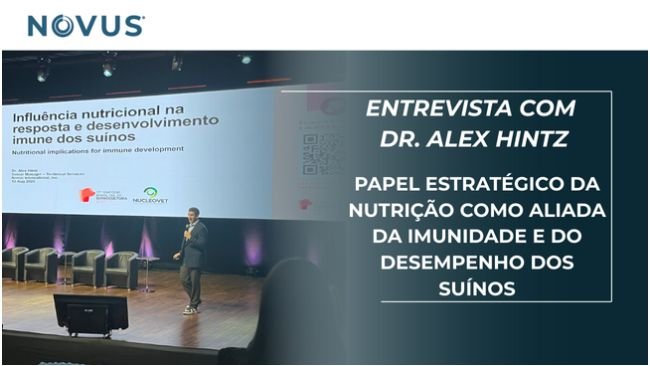 No SBSS 2025, Dr. Alex Hintz, da NOVUS, destaca como a nutrição pode fortalecer a imunidade dos suínos e melhorar o desempenho nas granjas.