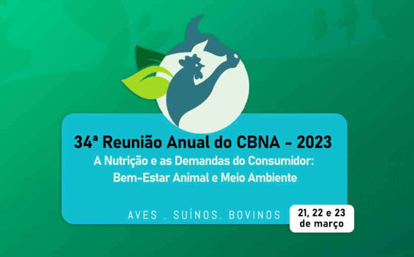 A 34ª Reunião Anual do CBNA "A Nutrição e as Demandas do Consumidor: Bem-Estar Animal e Meio Ambiente" - Aves, Suínos e Bovinos começa amanhã, dia 21, e termina dia 23, em Campinas, SP, na Expo D Pedro.