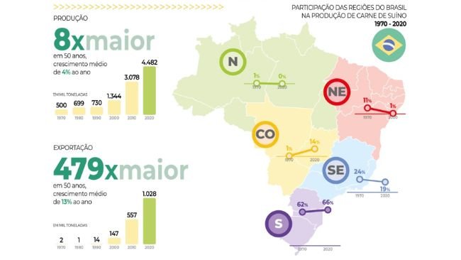 Dados e tendências da suinocultura, produção de carne, número de granjas, plantel etc.
