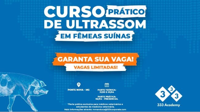 Nos dias 31/03 a 02/04 aconteceu o 1° Curso Teórico e Prático de Ultrassonografia aplicada a fêmea suína, oferecido pela 333 Academy.