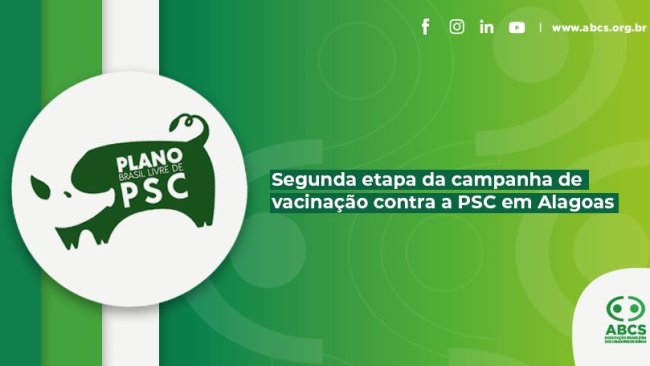 A segunda etapa da vacinação é uma continuação ao projeto piloto de implantação do Plano Estratégico Brasil Livre de Peste Suína Clássica em Alagoas, lançado em 2021.